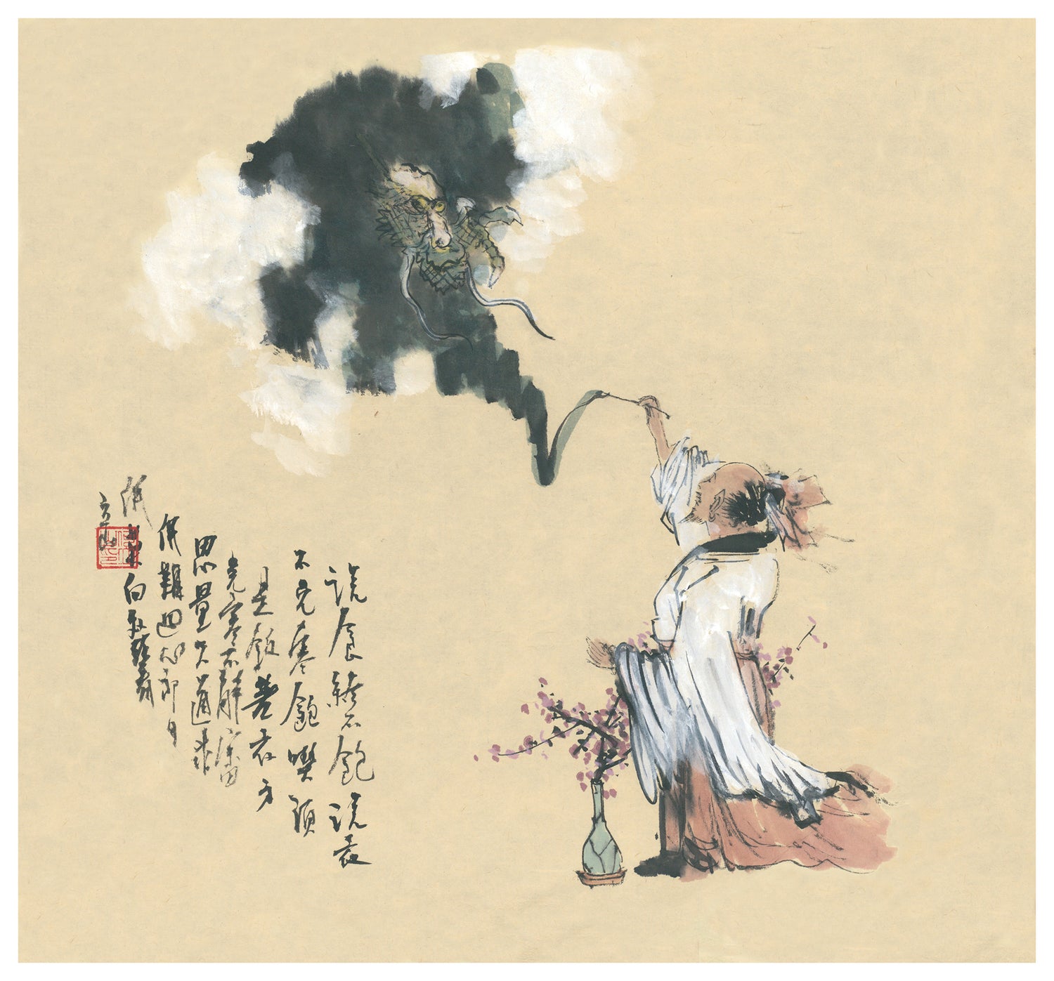 An artist-sage conjures up a powerful dragon using his magical brush.